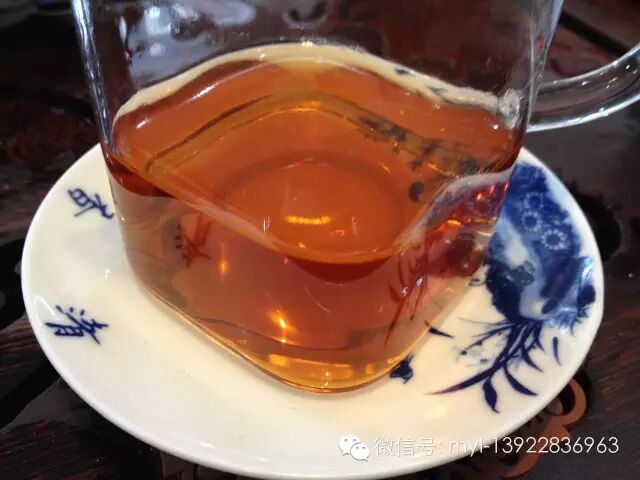 3、后者,用料一般,工艺正,只是当年发酵有点过重,可毕竟是十五年的纯干仓老茶,陈年气韵沉稳而美好,但因在用料和工艺有所欠缺,故在醇和度、圆润度、厚度及余韵上,皆不能与古树早春纯料的相提并论,可已经是实属难得了。